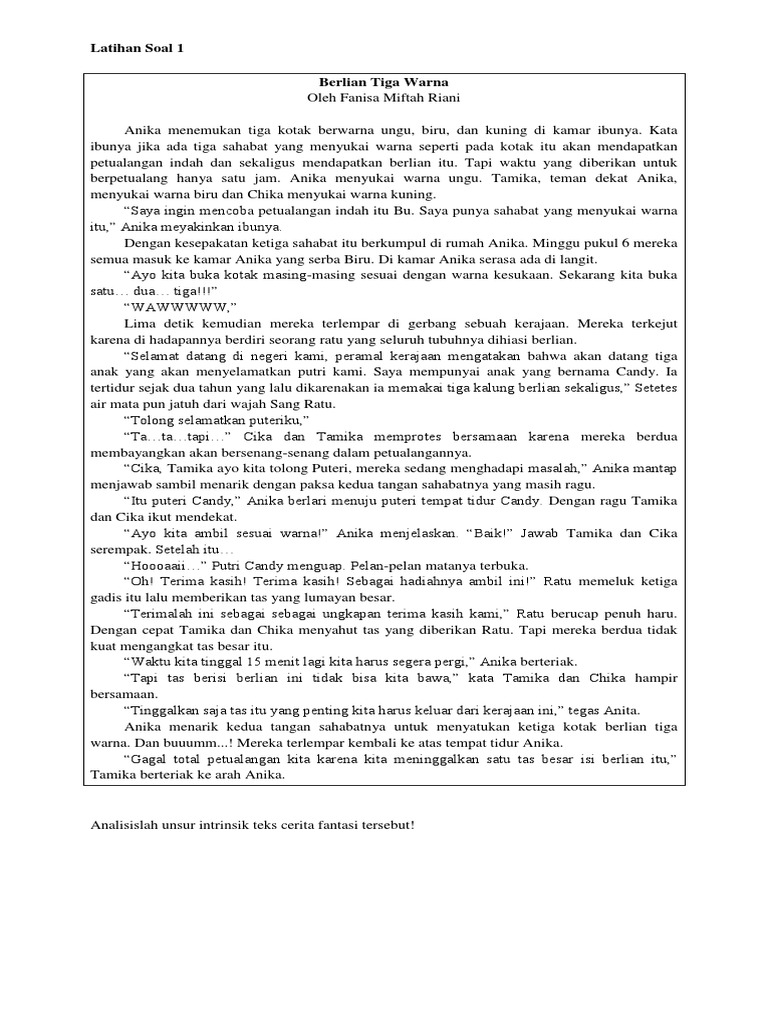 80 contoh soal cerpen pilihan ganda beserta jawabannya cory freeman setelah di akhir tahun kita di gemparkan dengan maraknya pendaftaran cpns dimana mana kini timbul lagi istilah. Bagaimana cerita fantasi bisa dikatgorikan? Contoh:ray berteriak,"apa yang kau lakukan dengan mesin waktu itu?"doctor herdt menjawab, "aku akan menambah dayanya." 2. Jun 08, 2020 · inilah soal bahasa indonesia kelas 7. Watak atau karakter dari tokoh dapat muncul karena adanya kerumitan permasalahan dalam cerita.
