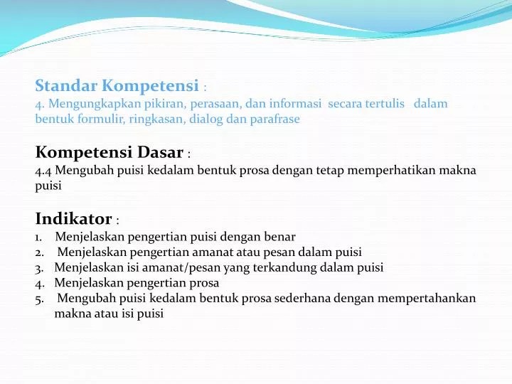 Selamat menikmati kumpulan puisi pendidikan yang ada di halaman ini. Kumpulan puisi anak masa kini berbagai tema serta pentingnya mengenalkan anak pada karya sastra. Selamat datang jiwa penuh ambisi. Yuk kita bermimpi dalam puisi, eeh . Setiap hari tanpa mengenal lelah. Kali penulis akan bahas tentang sekumpulan puisi yang menarik dalam bahasa . Bagaimana cerita dan makna di balik keempat rangkaian bait puisi tentang mimpi tersebut, untuk lebih jelasya. Kan ku jemput engkau serta hingga nyata Berikut adalah contoh puisi meraih mimpi. Cahaya gemerlap di pagi hari.