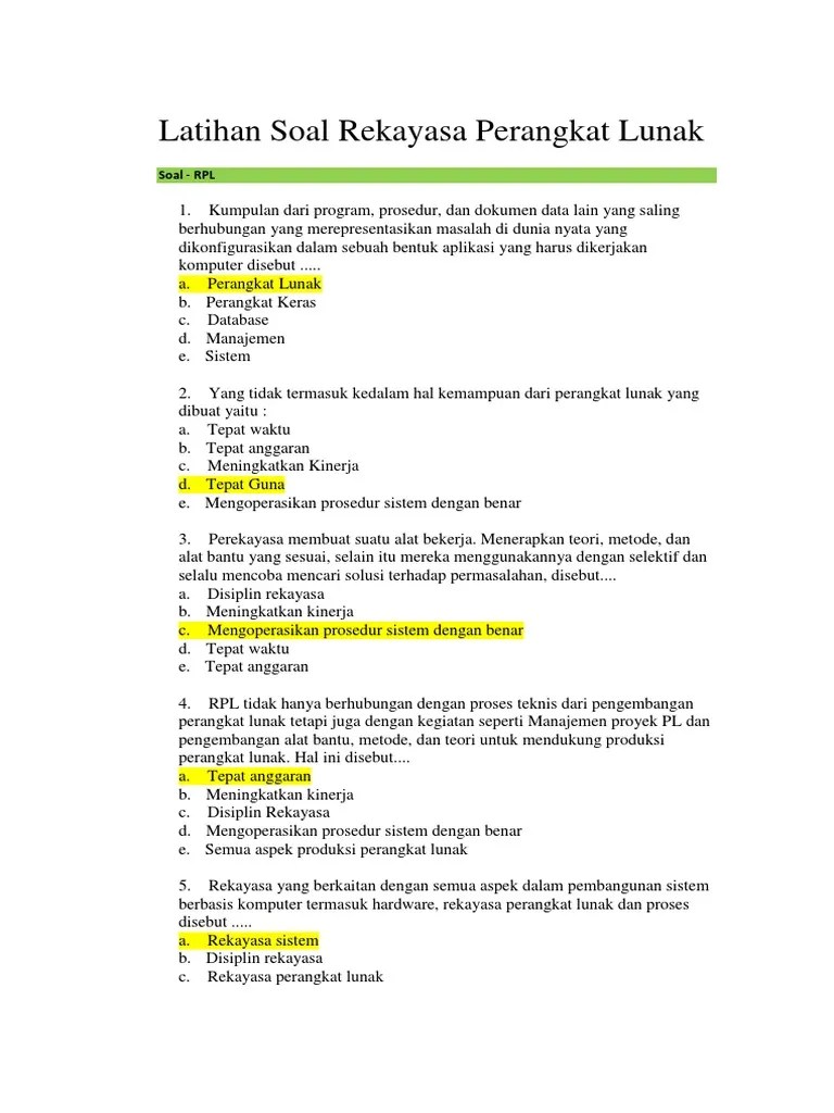 Latihan soal un teori kejuruan rekayasa perangkat lunak dan kunci jawaban .